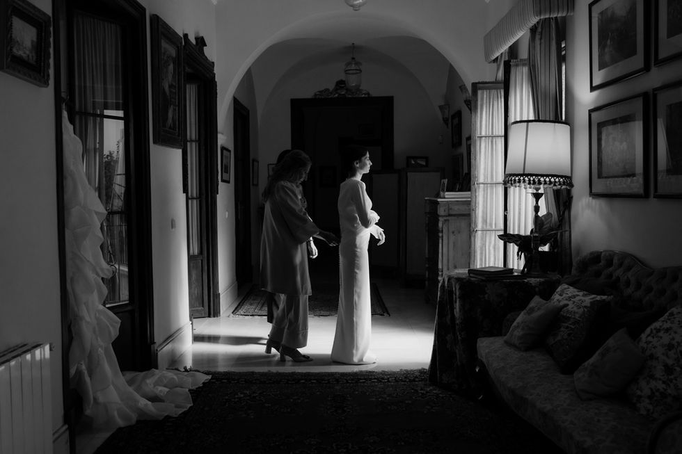 Mientras uno está contigo en los preparativos, el otro puede estar con tu pareja. Mientras uno se centra en tu entrada a la ceremonia, el otro captura las emociones de tu familia esperando.